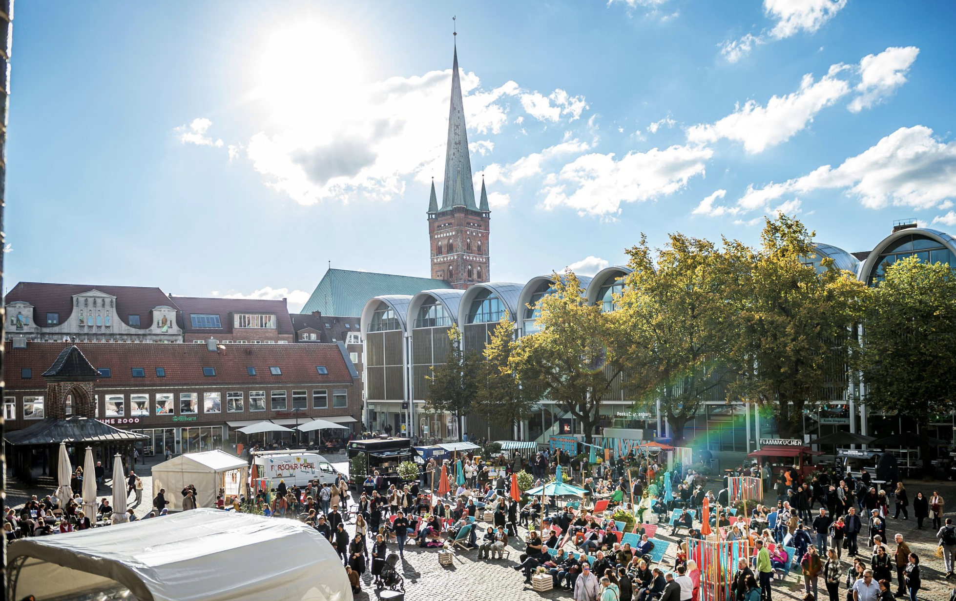 Unter dem Motto „Eine Stadt feiert Erntedank“ erleben Lübecker:innen und Gäste amWochenende des 4. und 5. Oktober 2025 ein buntes Programm aus Musik, Genuss und Tradition. Das Übergangswochenende wird am Sonntag durch den verkaufsoffenen Sonntag abgerundet – mit offenen Türen in teilnehmenden Geschäften, Cafés, Restaurants und Galerien in der Innenstadt, im übrigen Stadtgebiet und in Travemünde. Höhepunkte sind der Erntedank Open Air-Gottesdienst und Start in den Shopping-Sonntag. Um zwökl Uhr beginnt am Sonntag der traditionelle Open Air-Gottesdienst der Innenstadtgemeinde St. Marien auf dem Markt im Mittelpunkt. Unter dem Motto „mehr fürs meer“ gestalten Pröpstin Petra Kallies und Pastorin Inga Meißner ein fröhliches Programm mit Musik, gemeinsamem Singen und Impulsen zum Erntedank. Mitwirkende sind unter anderem das Lübecker Blechbläser Ensemble, das Team des Restaurants „Fangfrisch“ mit ihrer nachhaltigen „Fischaktie“, sowie Alexander Cochius mit dem Erntedank-Brot von KURTundWILLI. Auch das Traditionsrestaurant Schiffergesellschaft trägt mit einer veganen Kartoffelsuppe bei. Der Verkaufserlös fließt in die Stiftung 7Türme+.